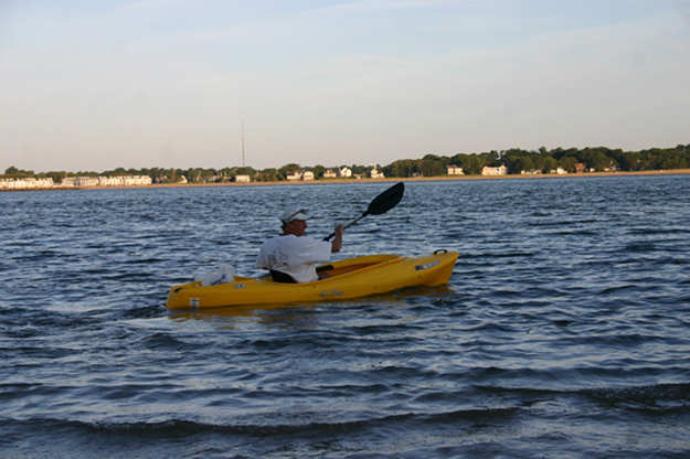 He checked a bag holding two bottles of water, two apples and his cellphone. In just minutes he was off, paddling his bright yellow kayak north toward the point, the blades catching the sun each time they rose rhythmically from the water.