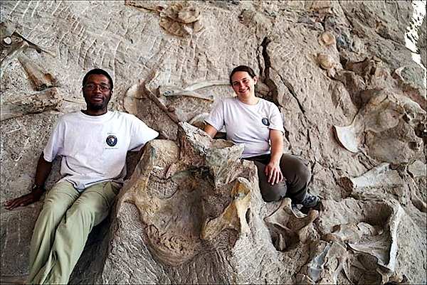 Ben Otoo and Nicole Ridgwell are spending the summer living a dream as they scramble and climb among the remains of the long dead. These young paleontologists are photographing and mapping the world famous deposit of ancient bones at Dinosaur National Monument. Their work is part of a multi-institutional effort to bring together the vast historical and scientific information about this great dinosaur quarry and ultimately make it available on-line to both scientists and the public. With over 1,500 dinosaur bones to document, and each bone needing multiple photographs to show all the anatomical details, plus converting several large historic quarry maps with drawings of thousands of bones needing into electronic files, it is a busy, but satisfying season.