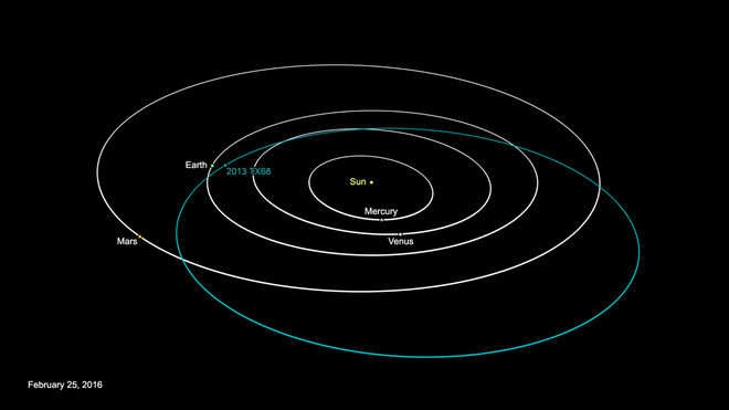 The near-Earth asteroid 2013 TX68 flew by our planet at 8:12 a.m. EST Monday at a distance of about 2.54 million miles (4.09 million kilometers), according to researchers at the Minor Planet Center. |
